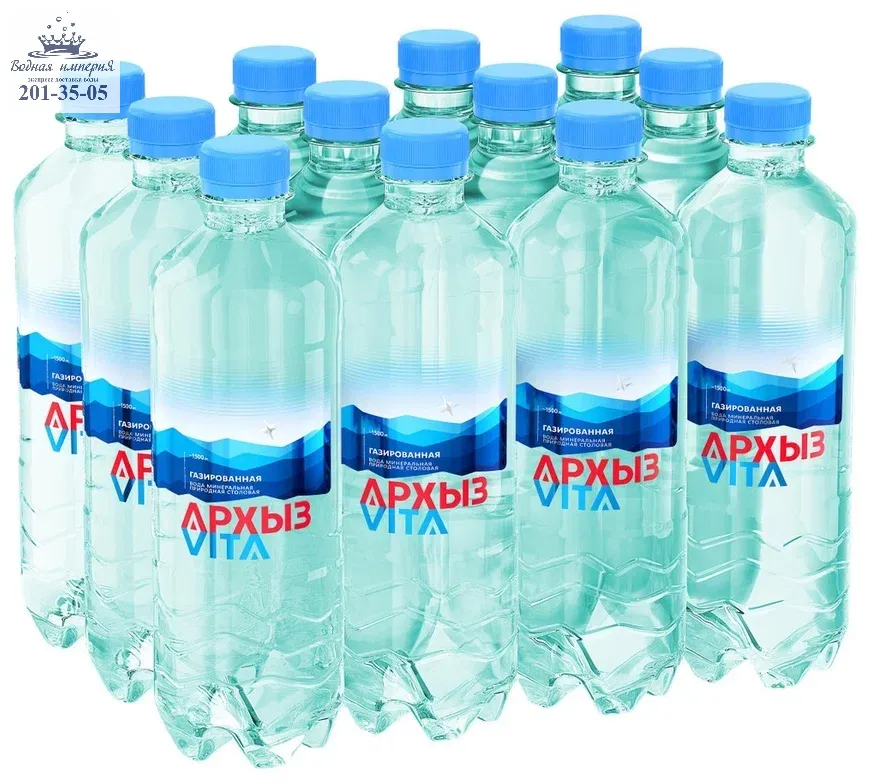 Вода Архыз 0,5 литра высшего качества. Сертификат соответствия: Вода минеральная питьевая природная столовая ГОСТ 23268, ТУ 9185-001-57662850-08. Срок годности 6 месяцев.